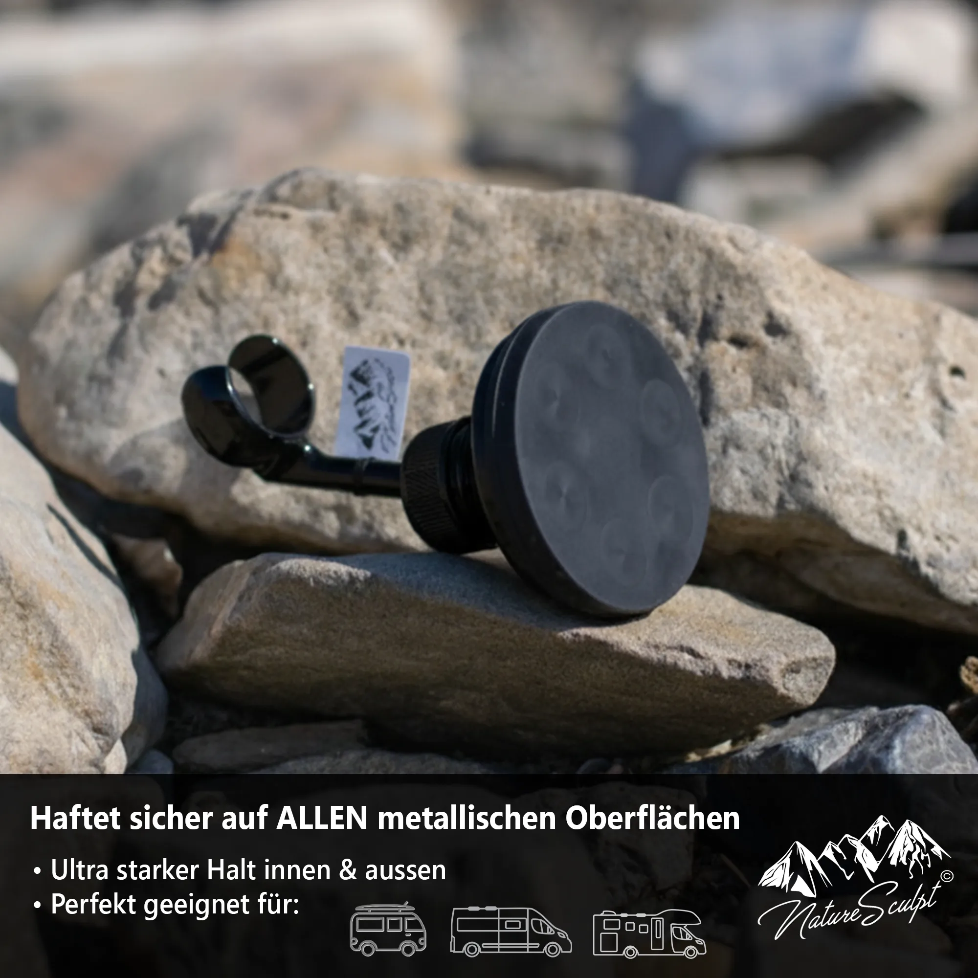 Perfekt für Wohnmobil, Van oder Camping! Die Duschkopfhalterung aus massivem Messing hält bis zu 5 kg und lässt sich dank starkem Magnet einfach an metallischen Flächen befestigen – ganz ohne Bohren.