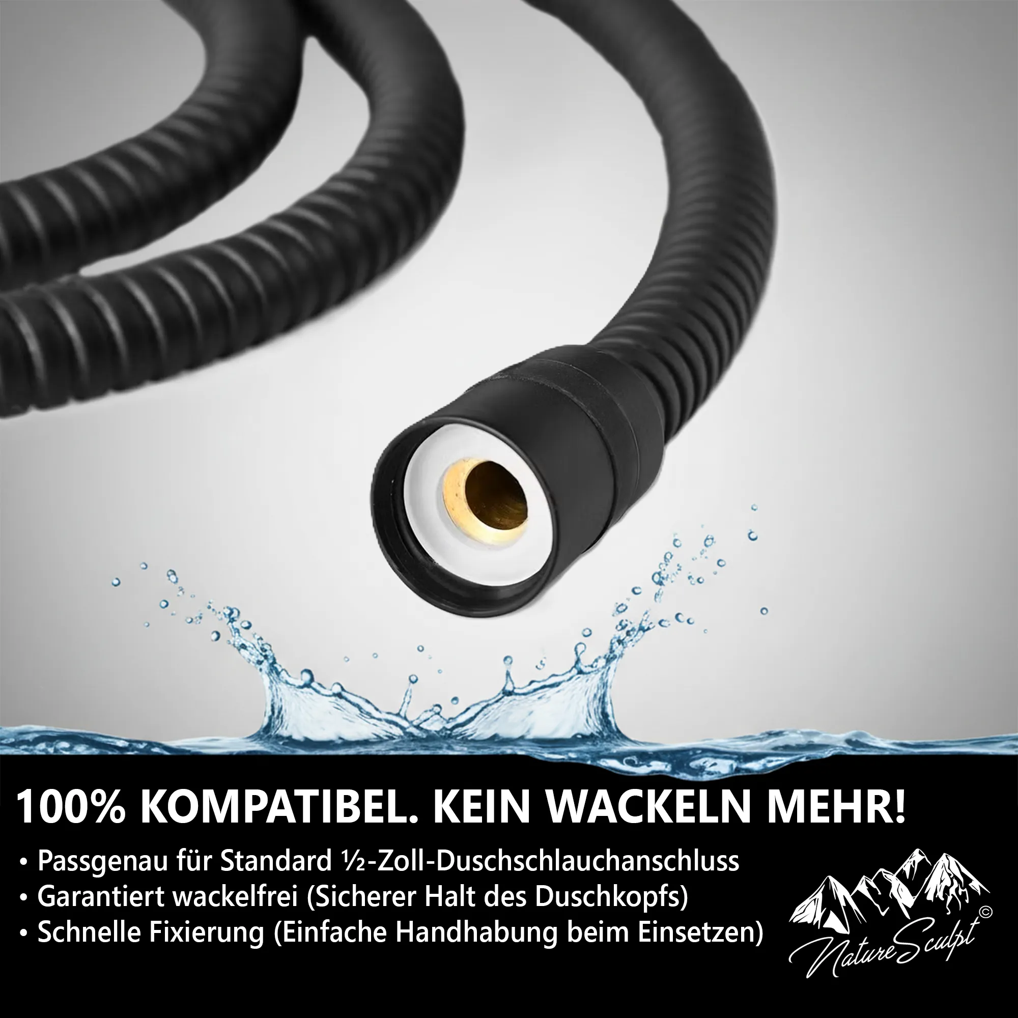 Der 360°-verstellbare Kopf sorgt für maximale Flexibilität beim Duschen. Kompakt, langlebig und in vier edlen Farben erhältlich: Schwarz Matt, Chrom, Gold und Roségold.